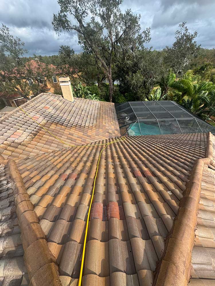 Florida’s humid climate makes roofs vulnerable to black streaks (Gloeocapsa Magma), moss, and lichen, which thrive in moisture-rich environments. These contaminants break down roofing materials, leading to costly repairs or even premature replacement. Regular roof maintenance helps extend the life of your shingles and tiles, keeping your home looking great and protecting its value.